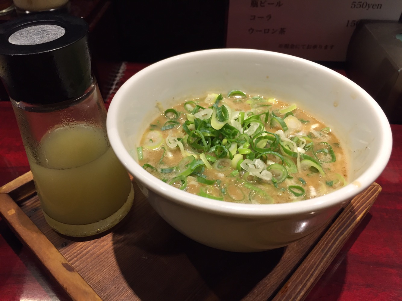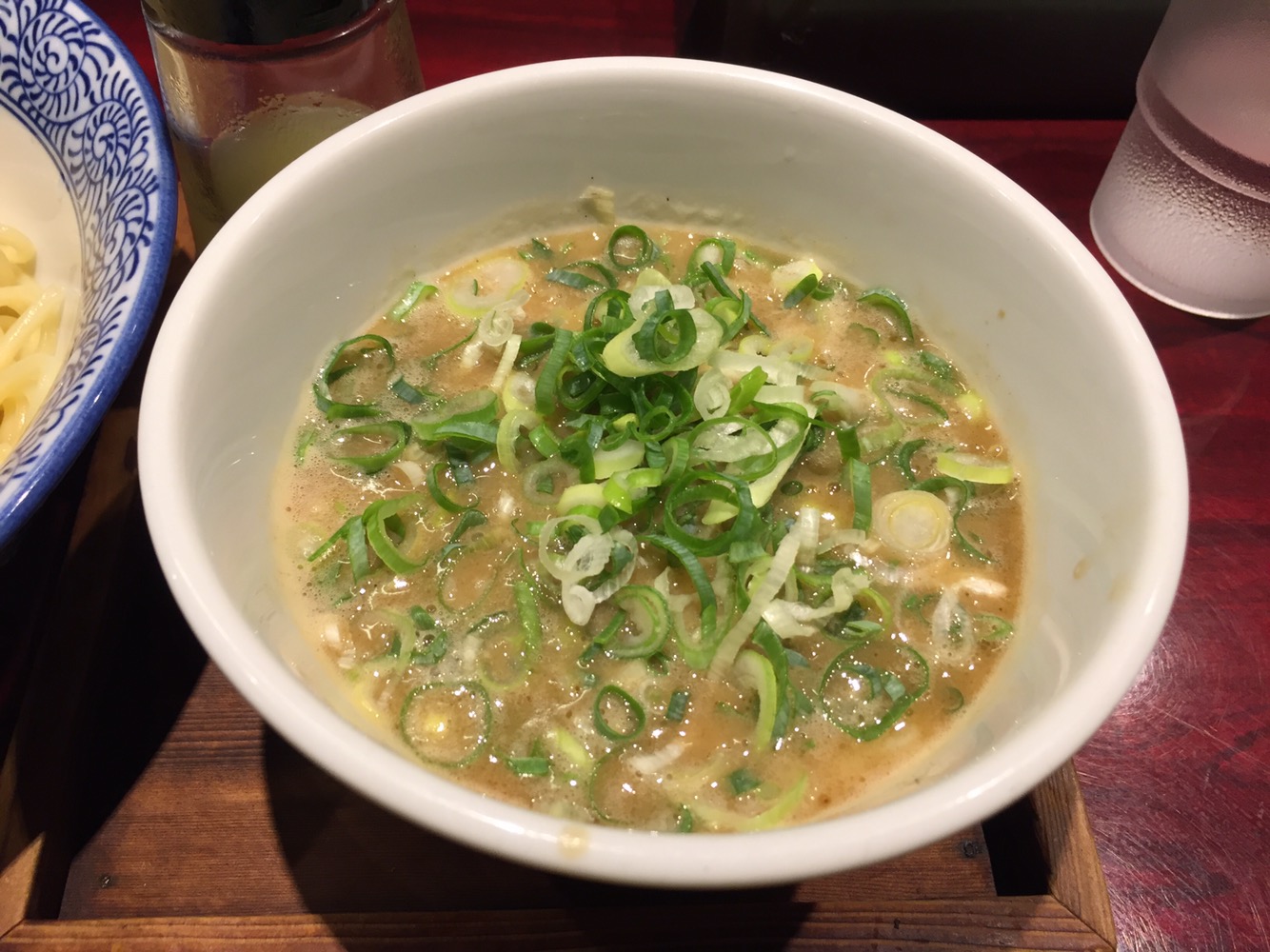 濃厚魚介つけ麵700円、中盛50円にして、トッピングでネギ50円を注文。