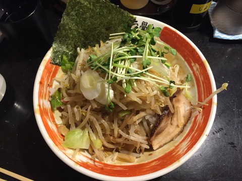 こんもりと積み上げられた太麺に、チャーシュー、海苔、野菜などが無造作にトッピングされています。