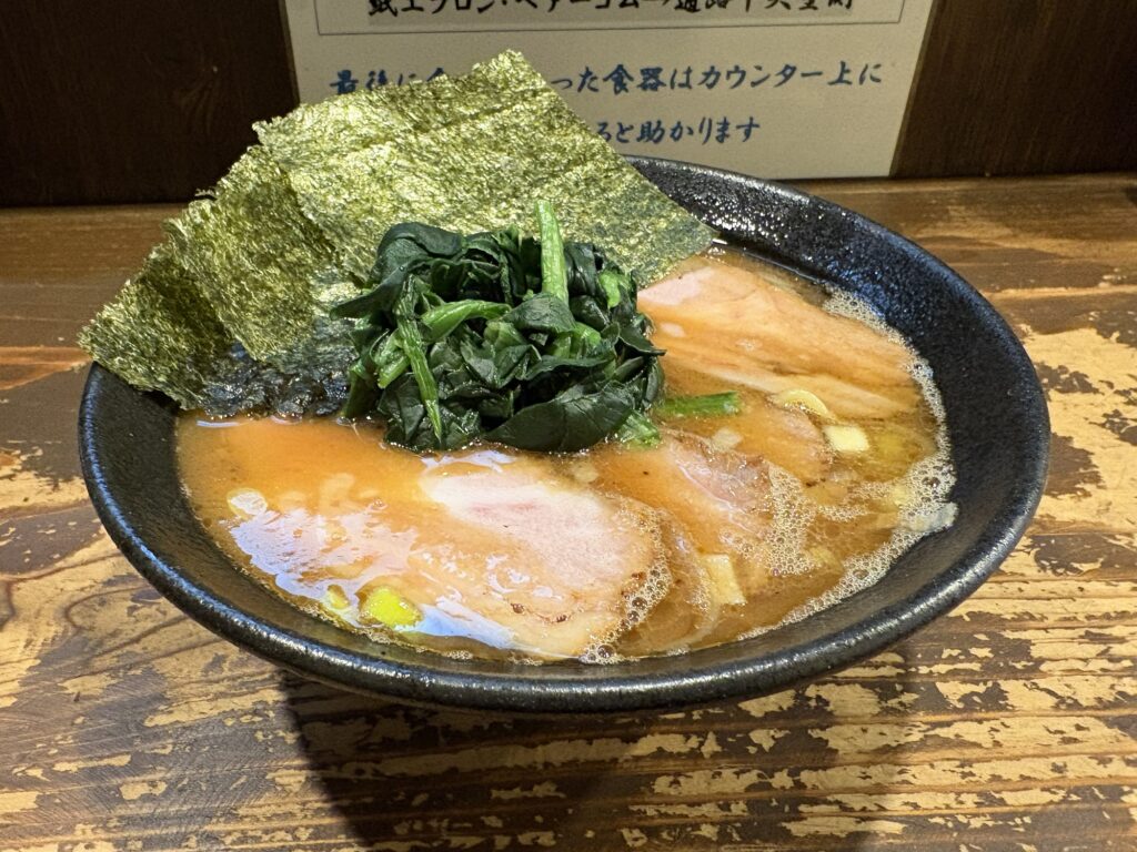 豚骨醤油ラーメンが売りの店。家系インスパイアのラーメンを提供する店です。