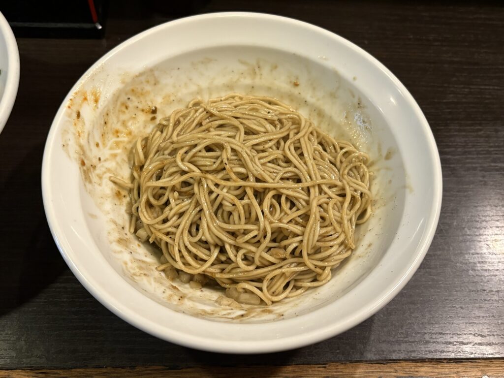 これがまた、どろり煮干しのタレがかかっていてパンチ力あり。さらに生七味の風味がアクセントになって、箸を入れたらもう一気でした。