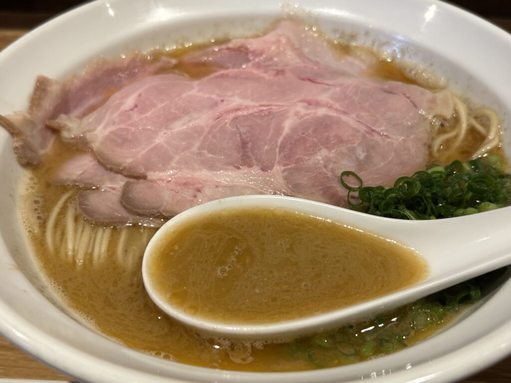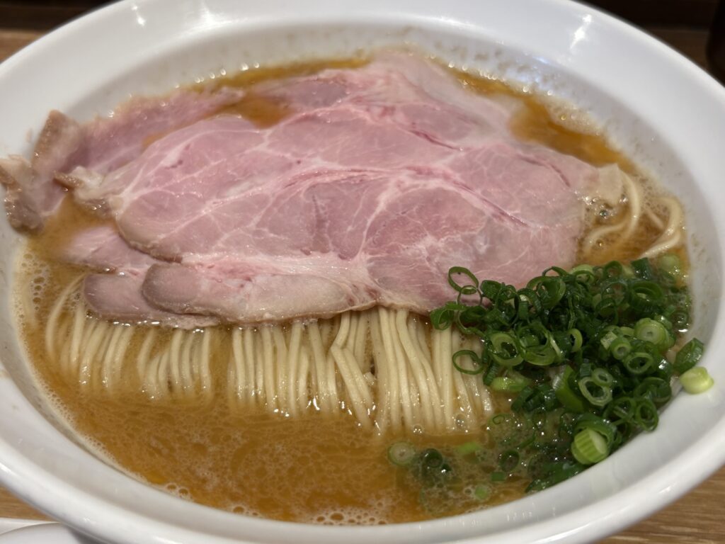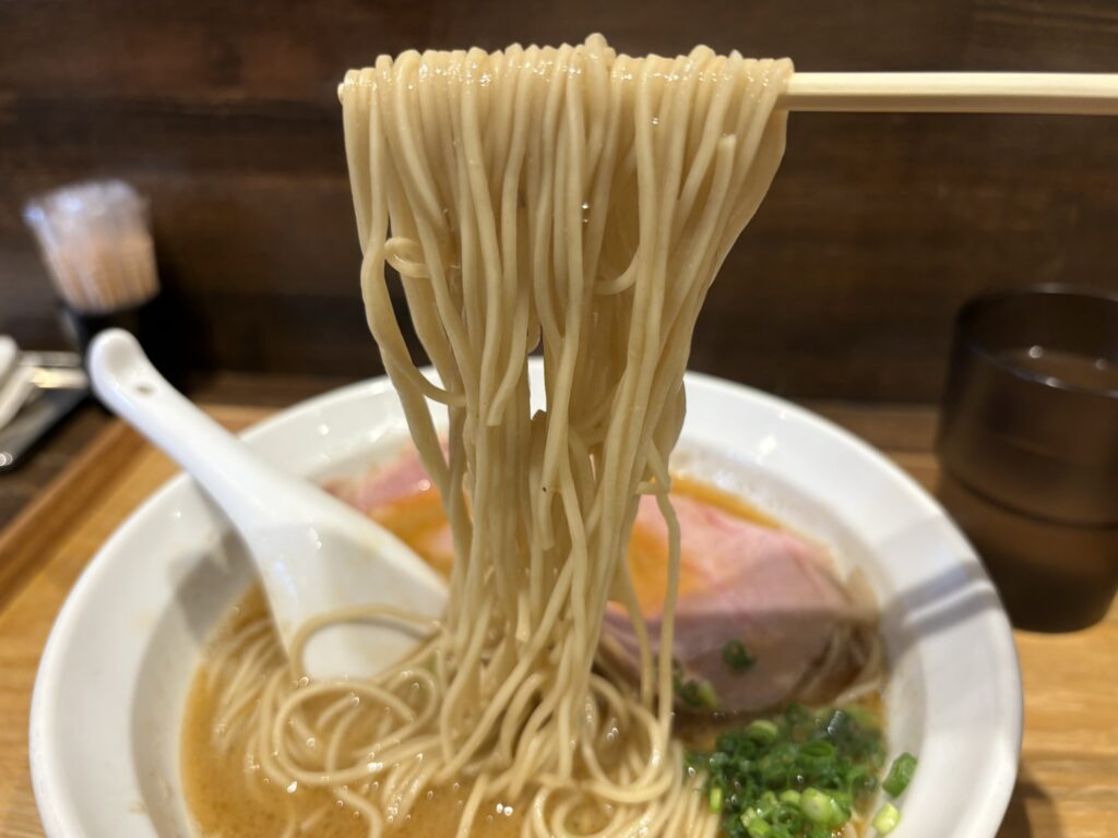 具材は、大ぶりのチャーシューとネギ。シンプルなラインナップで余計に煮干しスープが際立ちます。