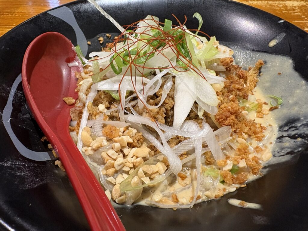 辛さは強すぎず、あくまで旨みを引き立てる絶妙なバランス。これは、らーめん蓮が手掛ける新しい汁なし担々麺のスタイル。