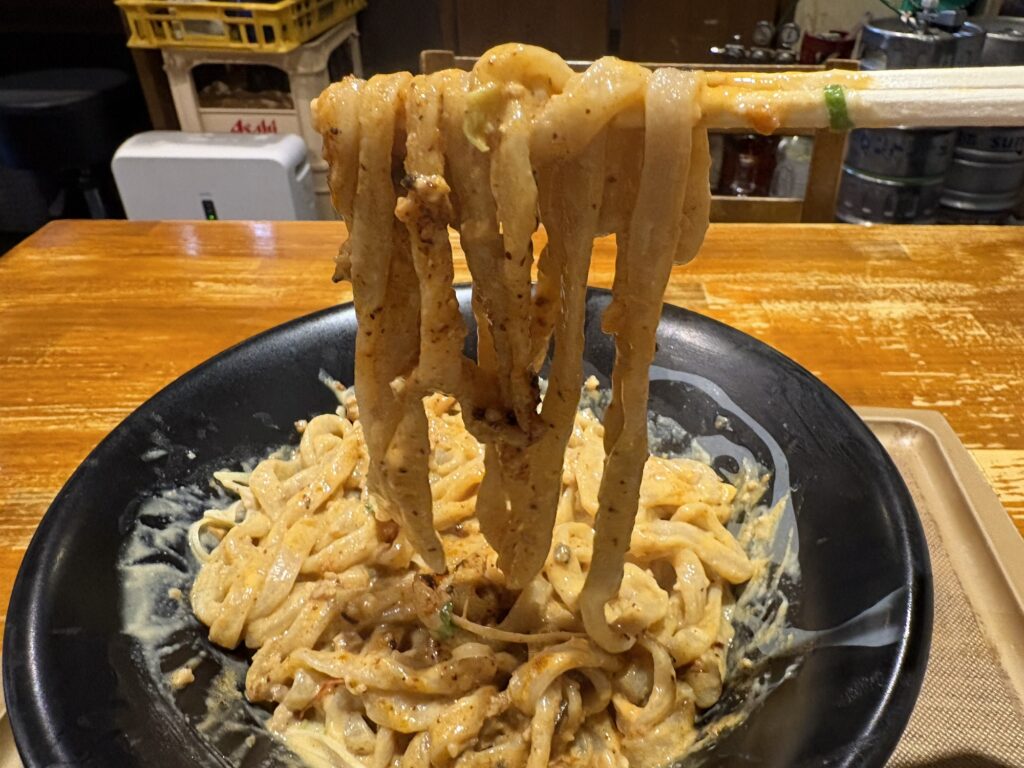 そのビジュアルに引き込まれるように、箸で麺を持ち上げてズズっとすすり上げます。