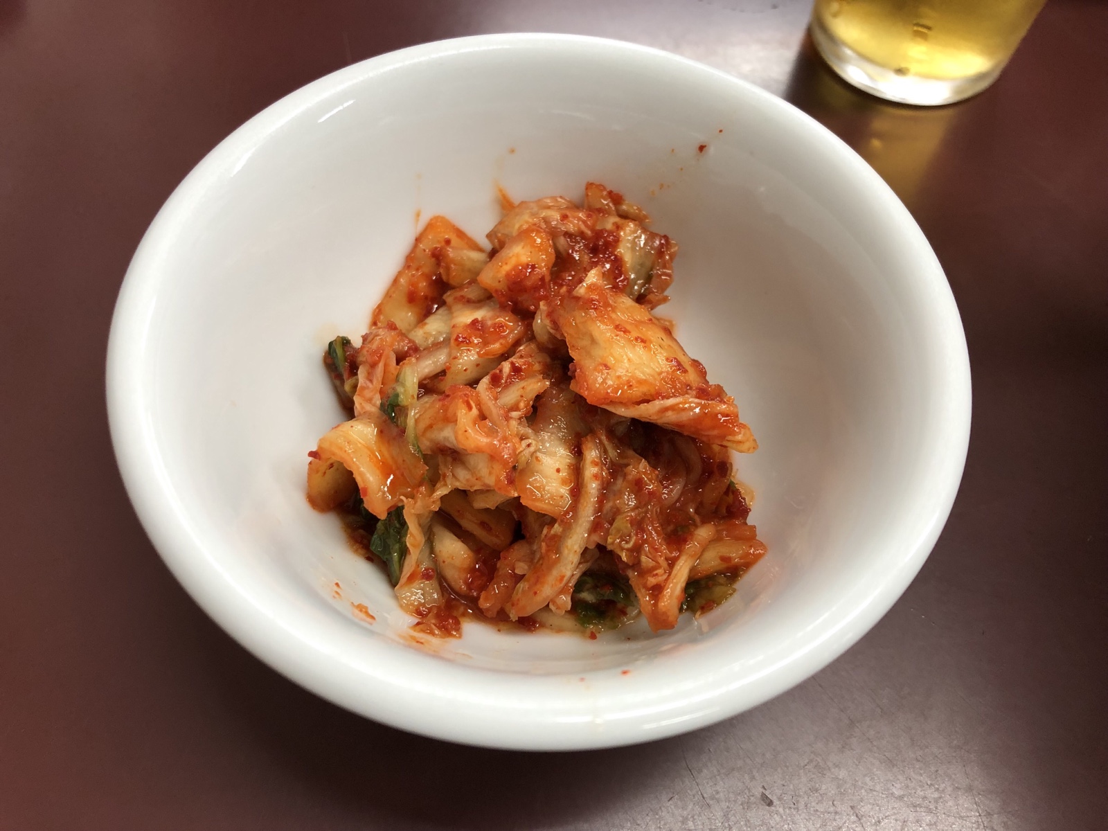 さらに、ビールも注文。つまみにキムチ。こちらも100円とコスパ抜群でした。