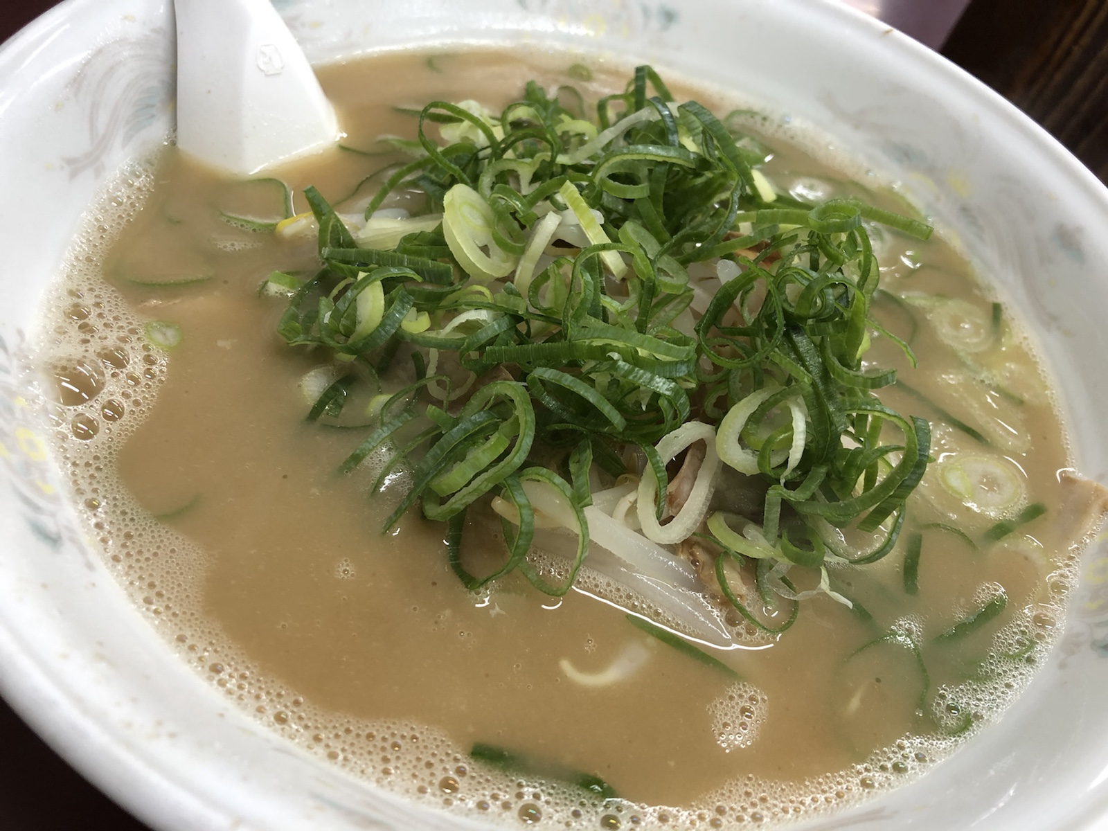 ラーメンが着丼です。ほんのりとただよう豚骨の香り。食欲がそそられます。