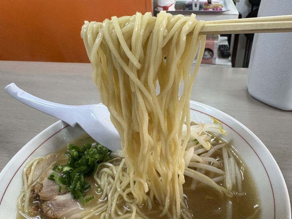 麺は、これまた王道の風格を漂わせるストレート細麺。大盛りにしたので、箸を上げるたびにボリュームを感じられて幸せです。