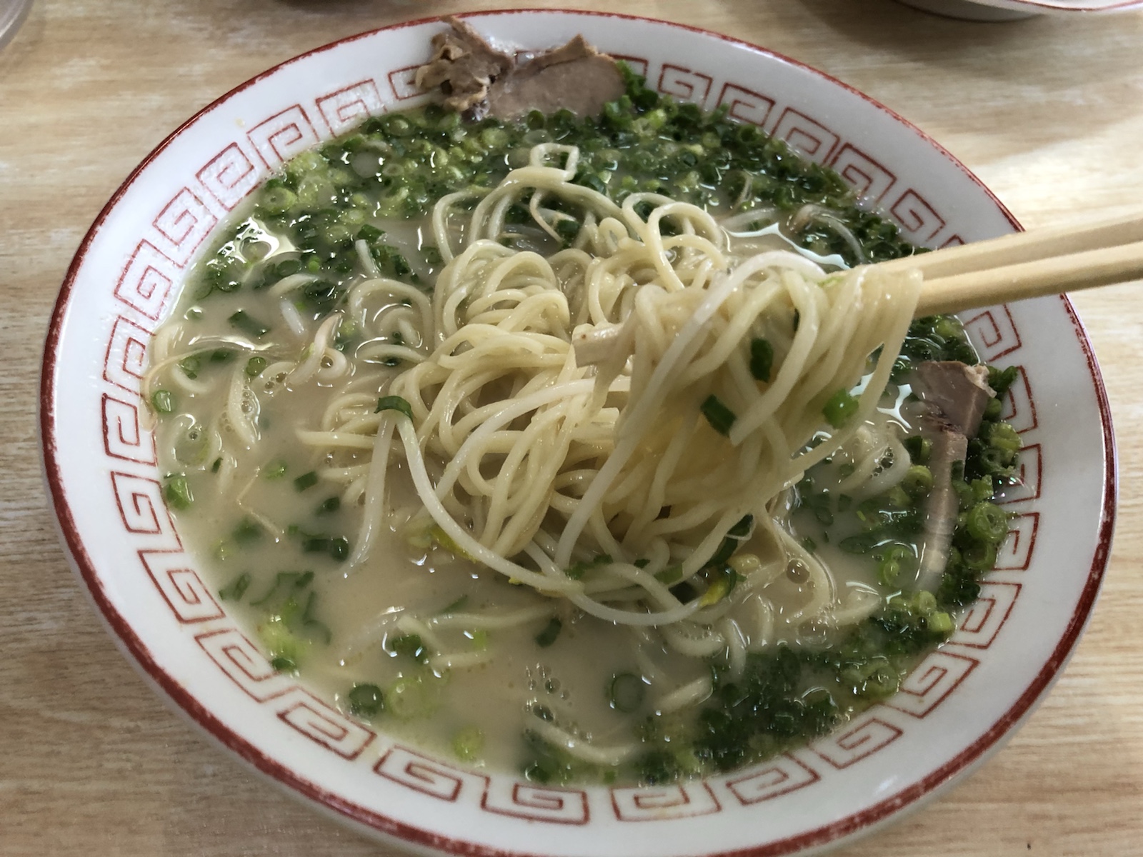 麺は中細ストレート麺。しっとりとしてモチモチとした食感は、博多とはちょっと違う感じ。
