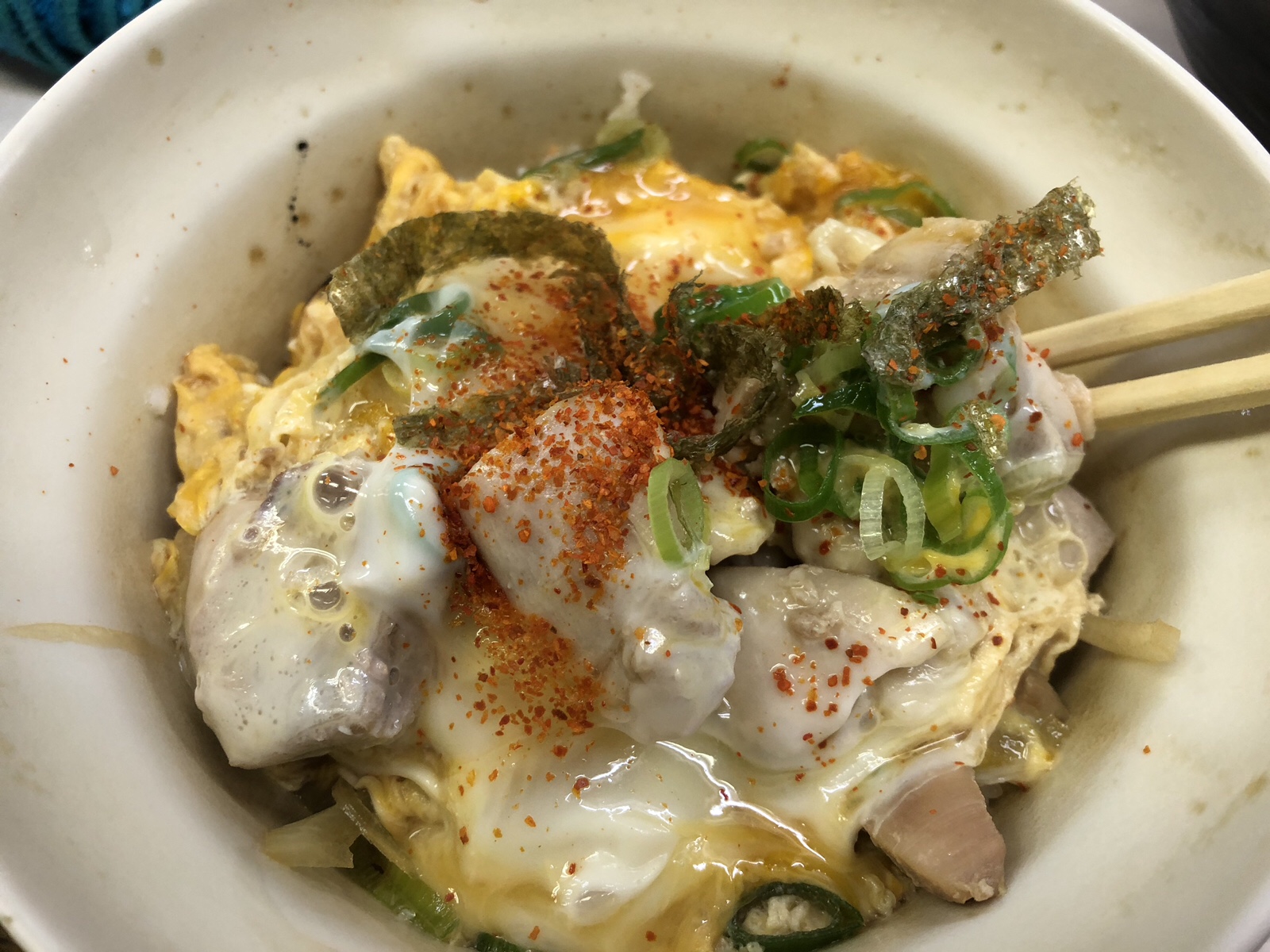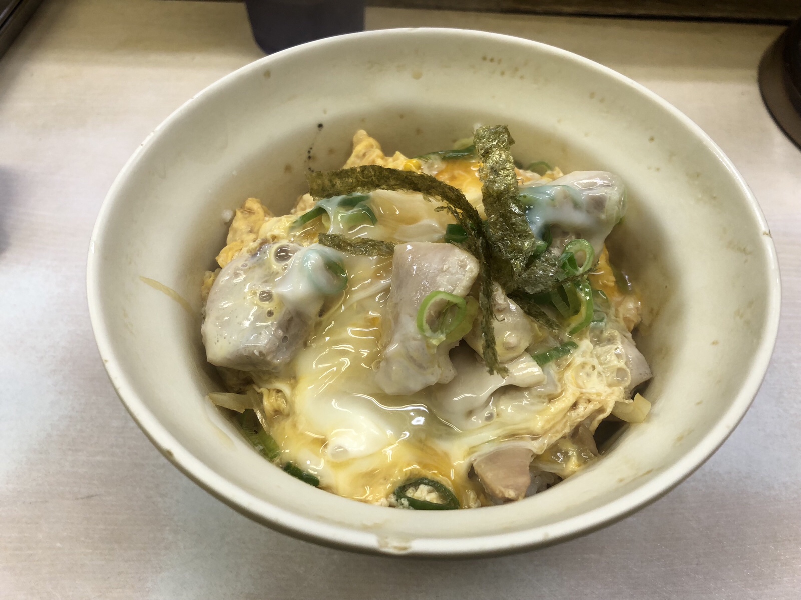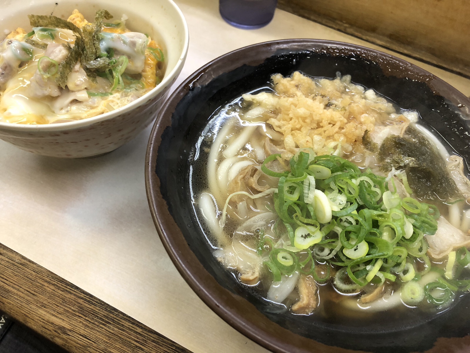 店の前にある券売機で注文したのは、かすうどんと親子丼のセットです。