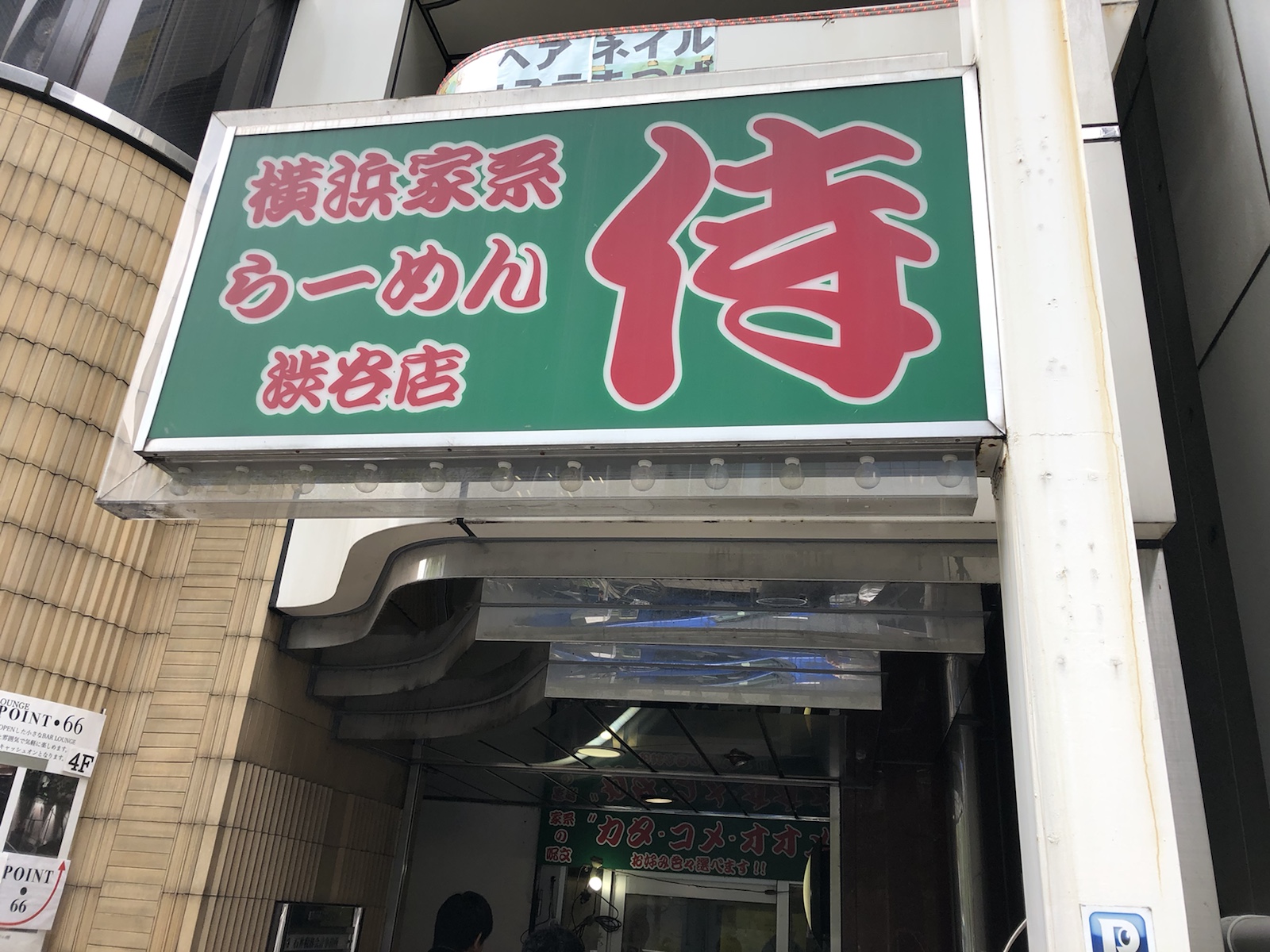渋谷の繁華街から少し離れたこちらの店へ。横浜家系ラーメン「侍」です。