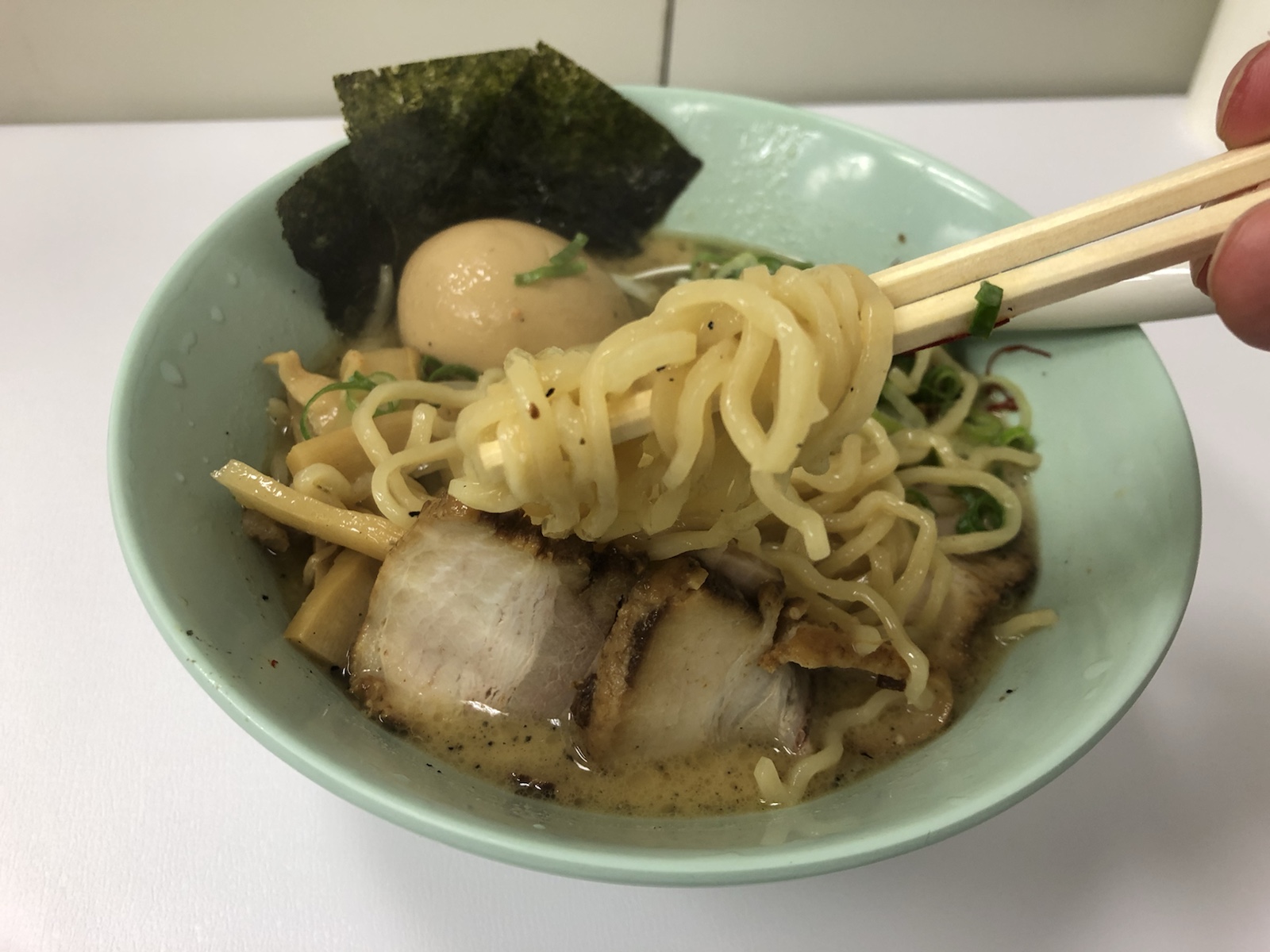 脂がただよう乳白色がかったスープも食欲をそそります。