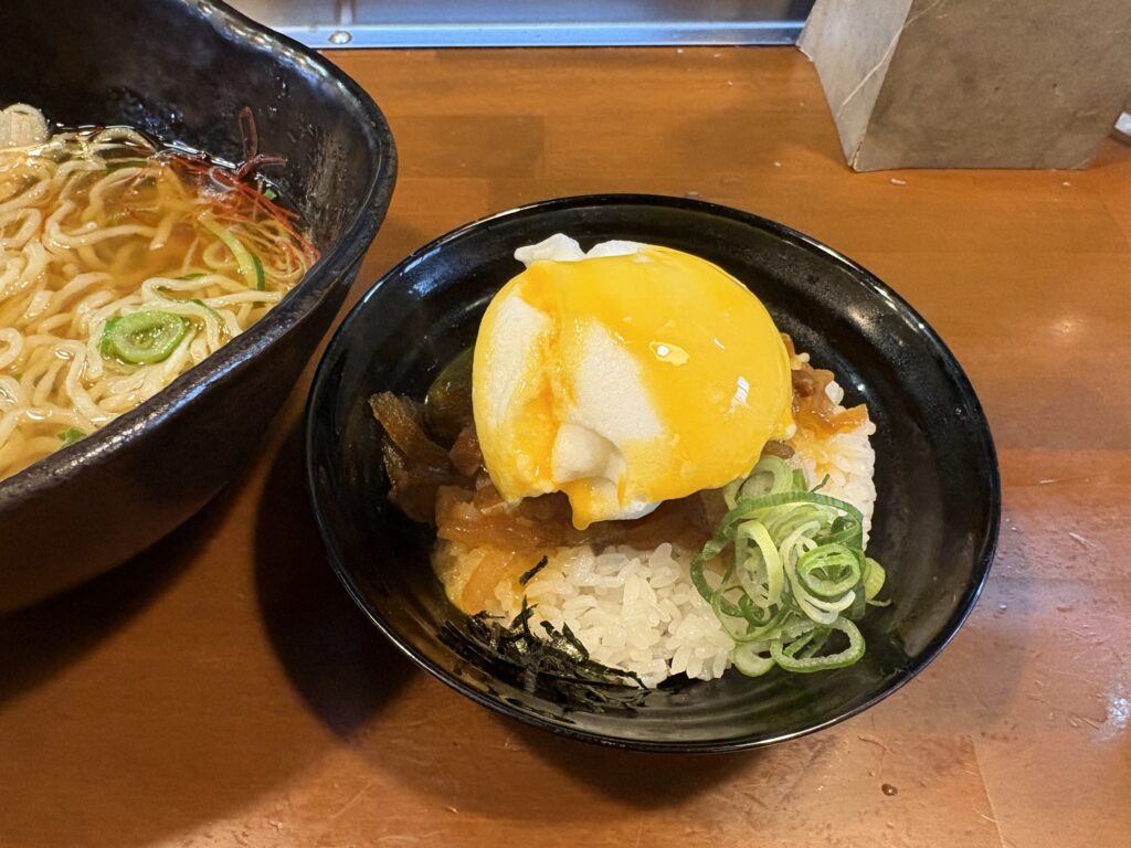 最後はラーメンのスープを少し丼にかけて、「お茶漬け風」にして食べました。