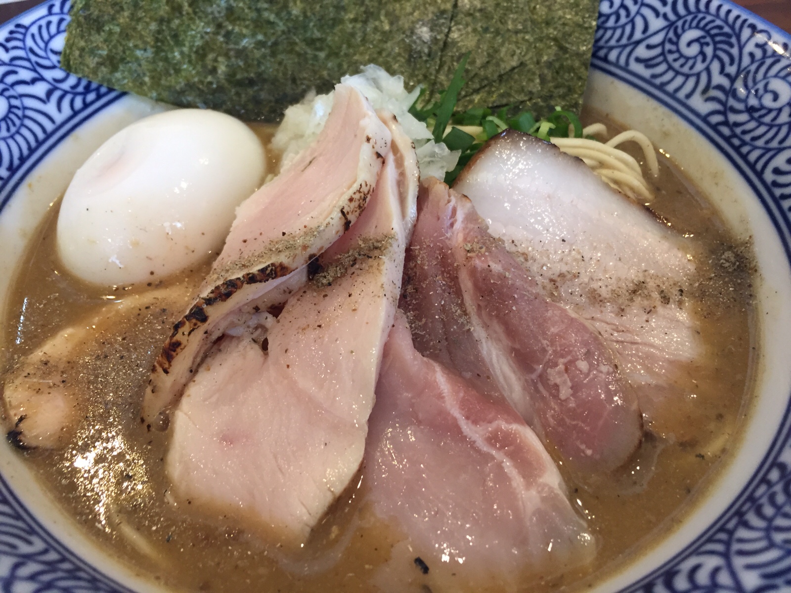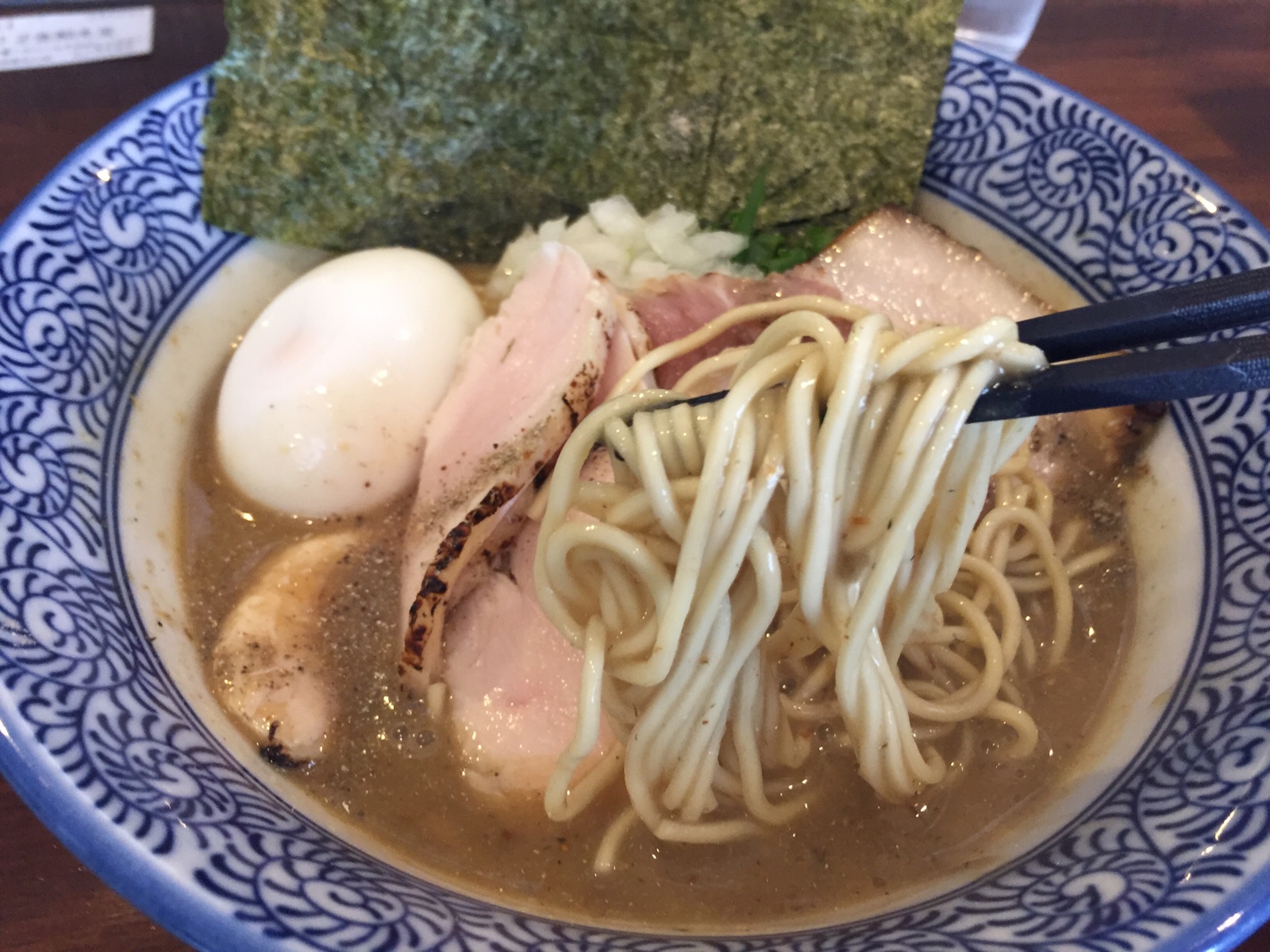 具材は、チャーシュー、味玉、玉ねぎとのり。