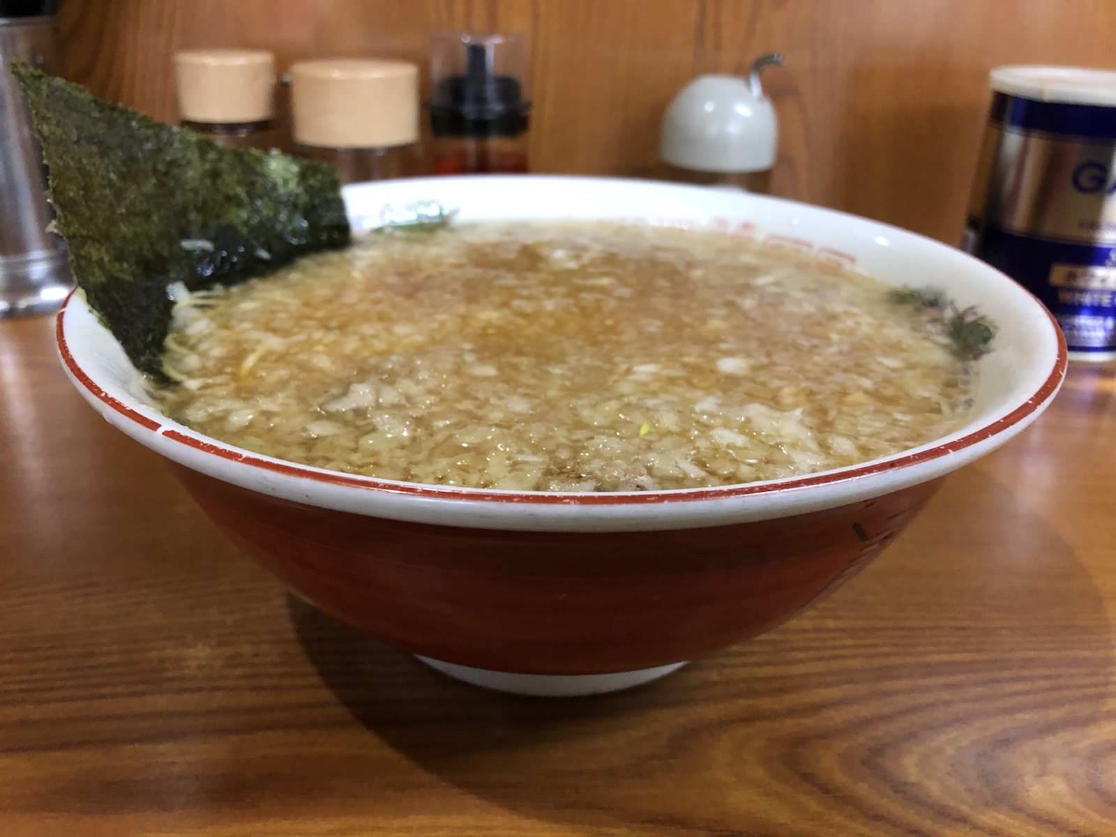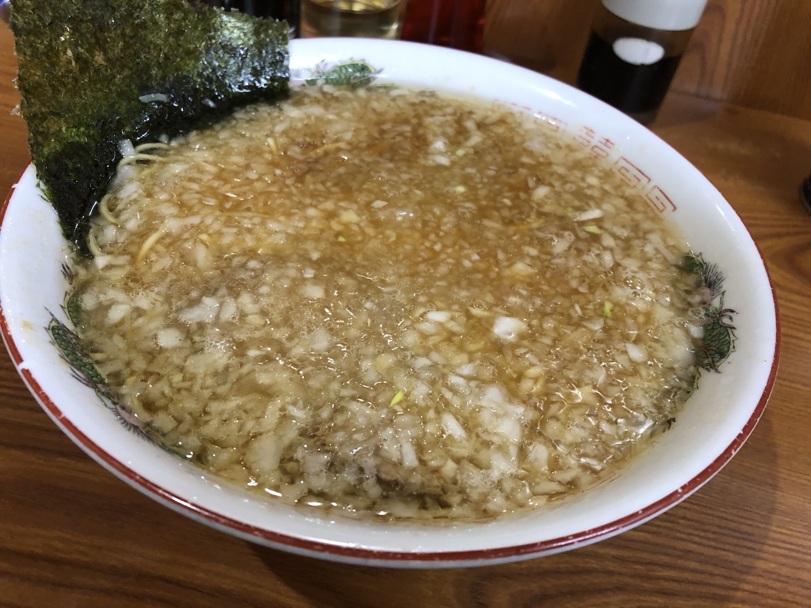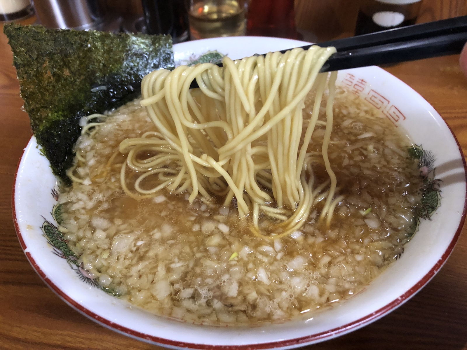 特徴は、醤油出汁の効いた優しいスープと、そのスープを覆う脂、そして具材に使われる刻み玉ねぎ。
