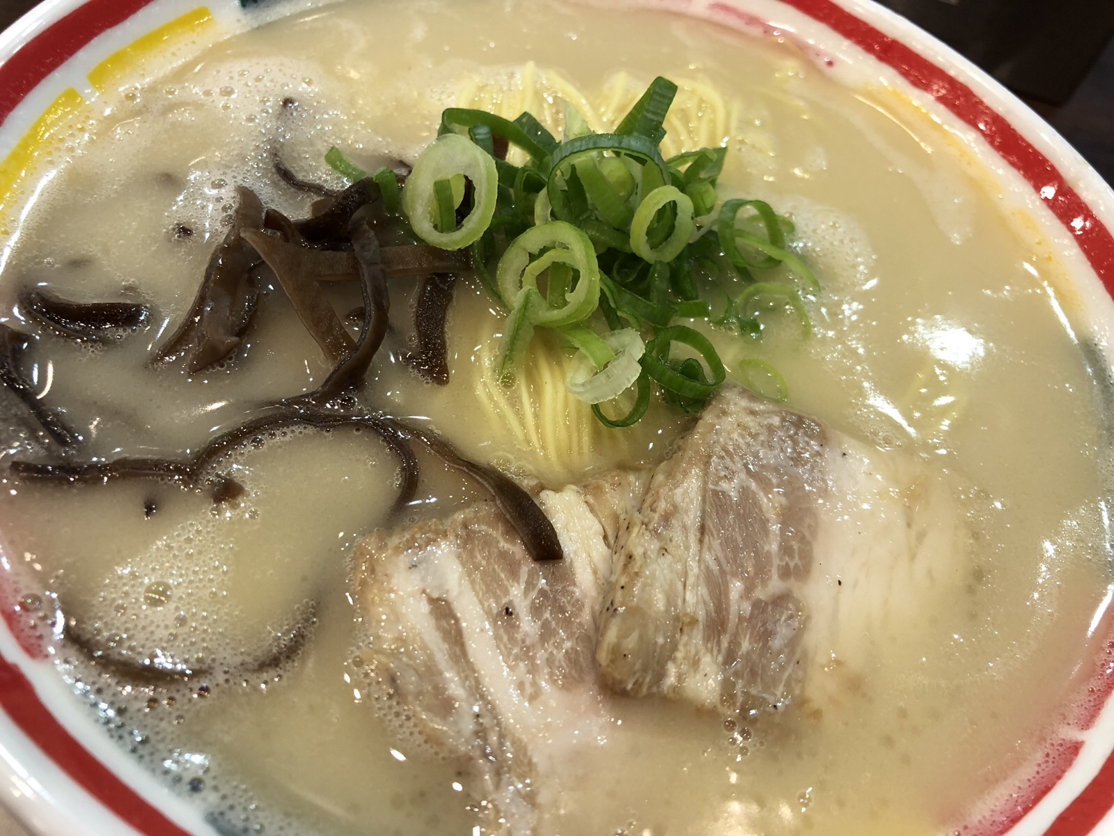 きました。このとんこつ臭は、好きな人にはたまりません。王道のとんこつスープ。