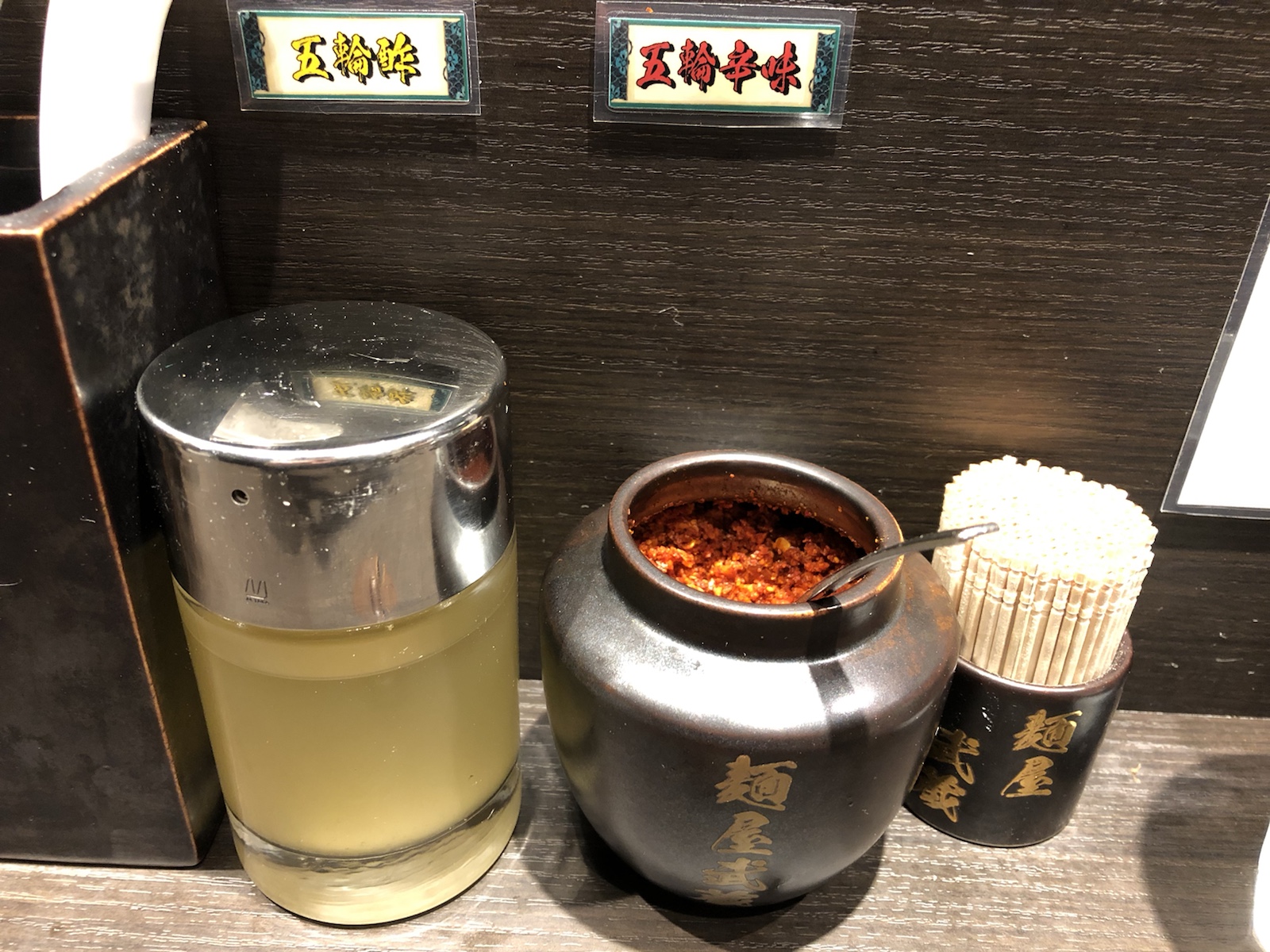 途中で卓上の「五輪辛味」を投入して味変!激辛に!