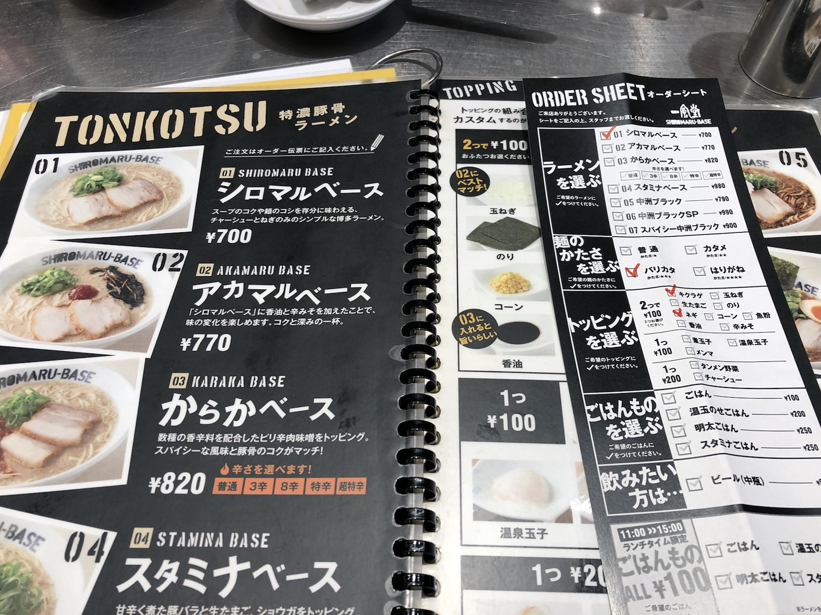 今日の夢中は、「一風堂SHIROMARU BASE」大森店です。