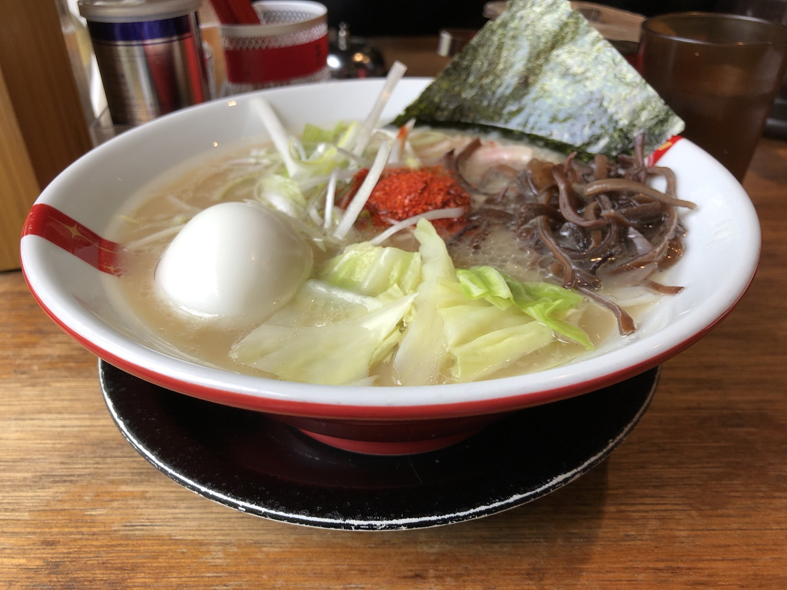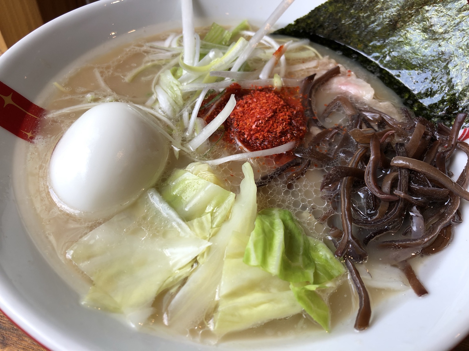 3辛ぶんの唐辛子がのっています。ぜんぶ美味しいけど、やっぱりきくらげの相性がいいですよね、豚骨って。