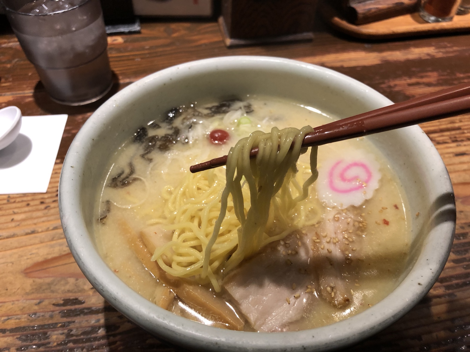 これと合うのが、中細のちぢれ麺。玉子麺なんでしょうね、モチモチです。