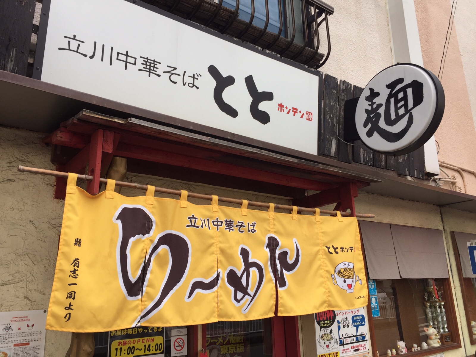 立川駅北口から徒歩10分ほど、立川の人気ラーメン店「立川中華そば とと ホンテン」です。