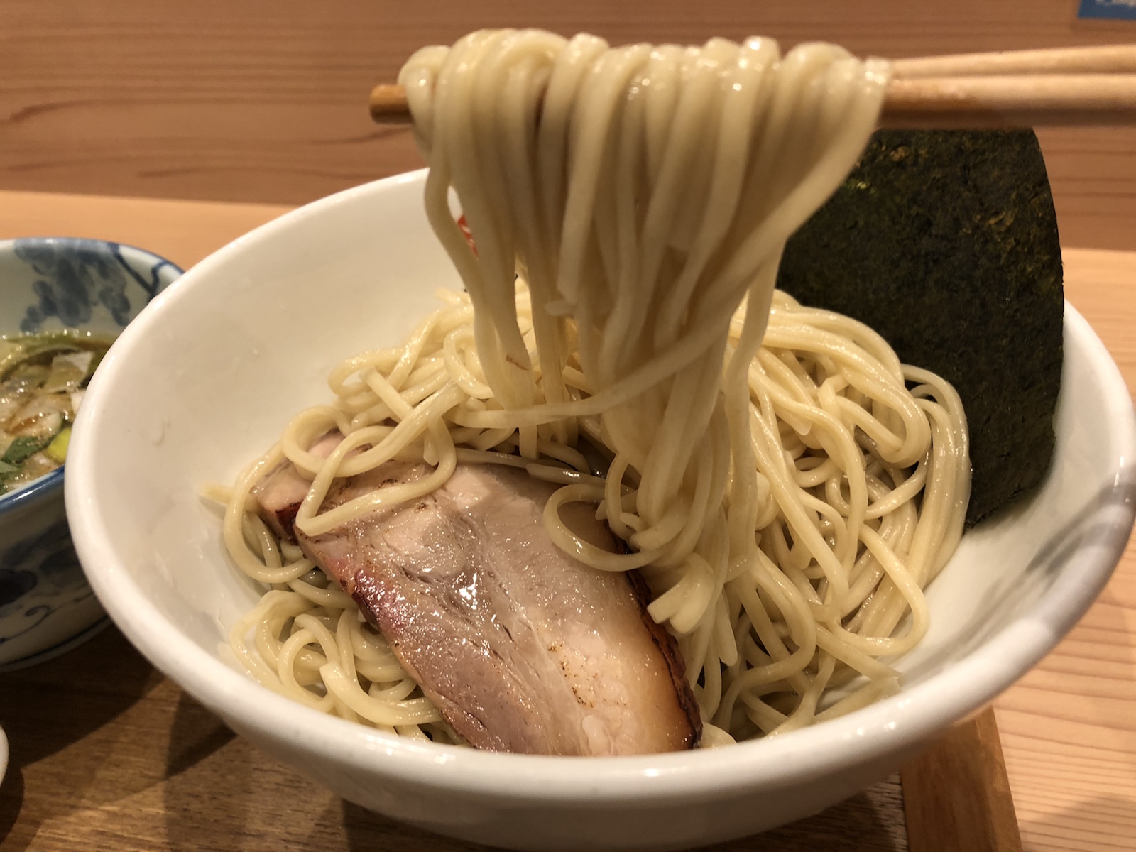 つけ麺にしては細めの麺は、そのまますすると小麦(はるかゆたか)の風味が口いっぱいに広がります。