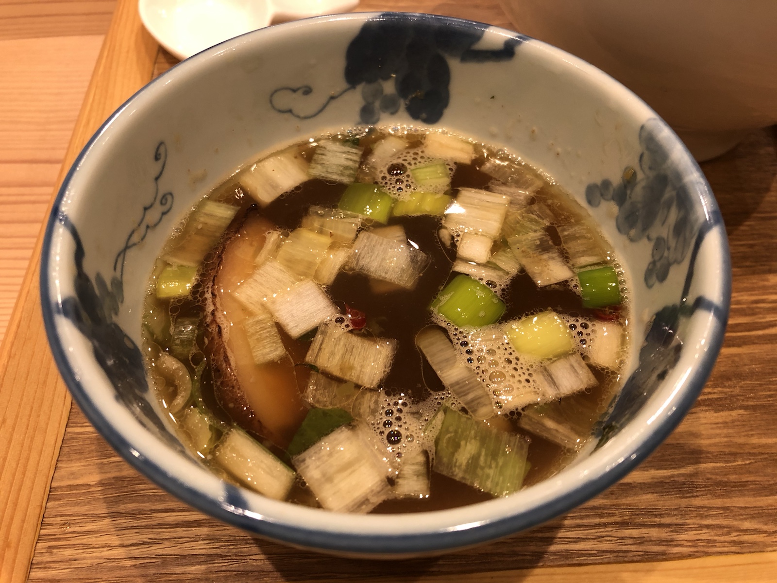 最後はスープ割。椀を渡すと厨房で出汁を温めて作ってくれるスタイル。